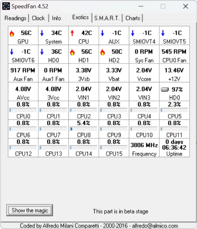 SpeedFan Download 拥有免费软件许可证,适用于笔记本电脑和台式电脑的 Windows 32 位操作系统,所有软件用户均可在特定期限内免费试用,免费下载但可能存在限制。它属于系统信息类别,由 almico.com 开发。